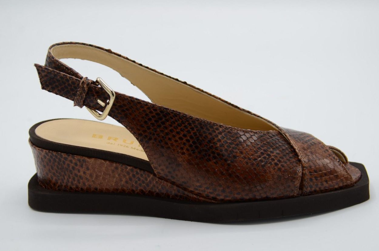 sandal brown python printed leather wedge
