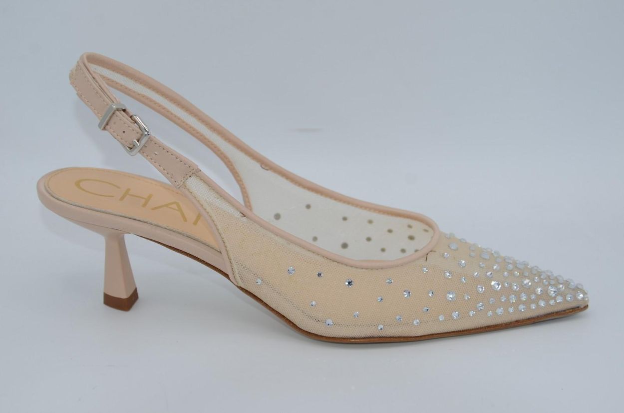pump sling décolté beige strass textile