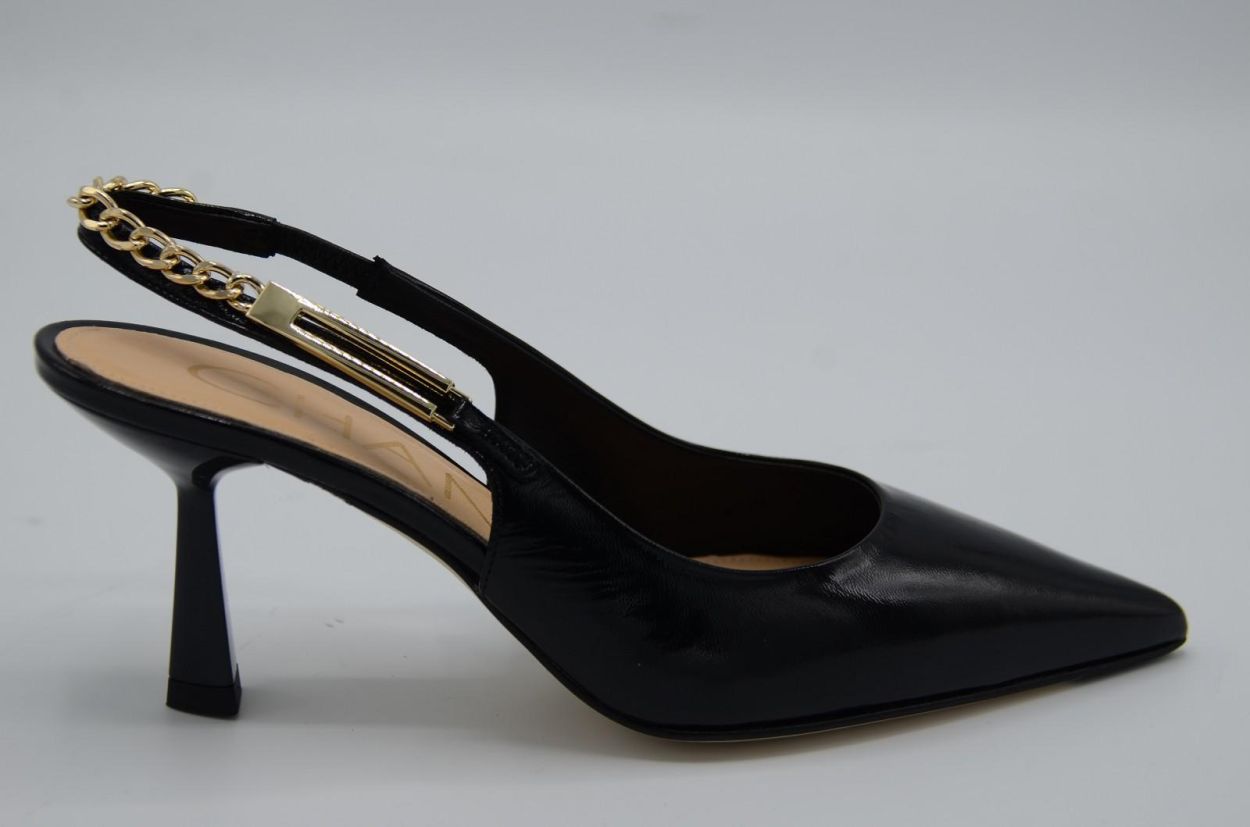 pump sling décolté black patent leather