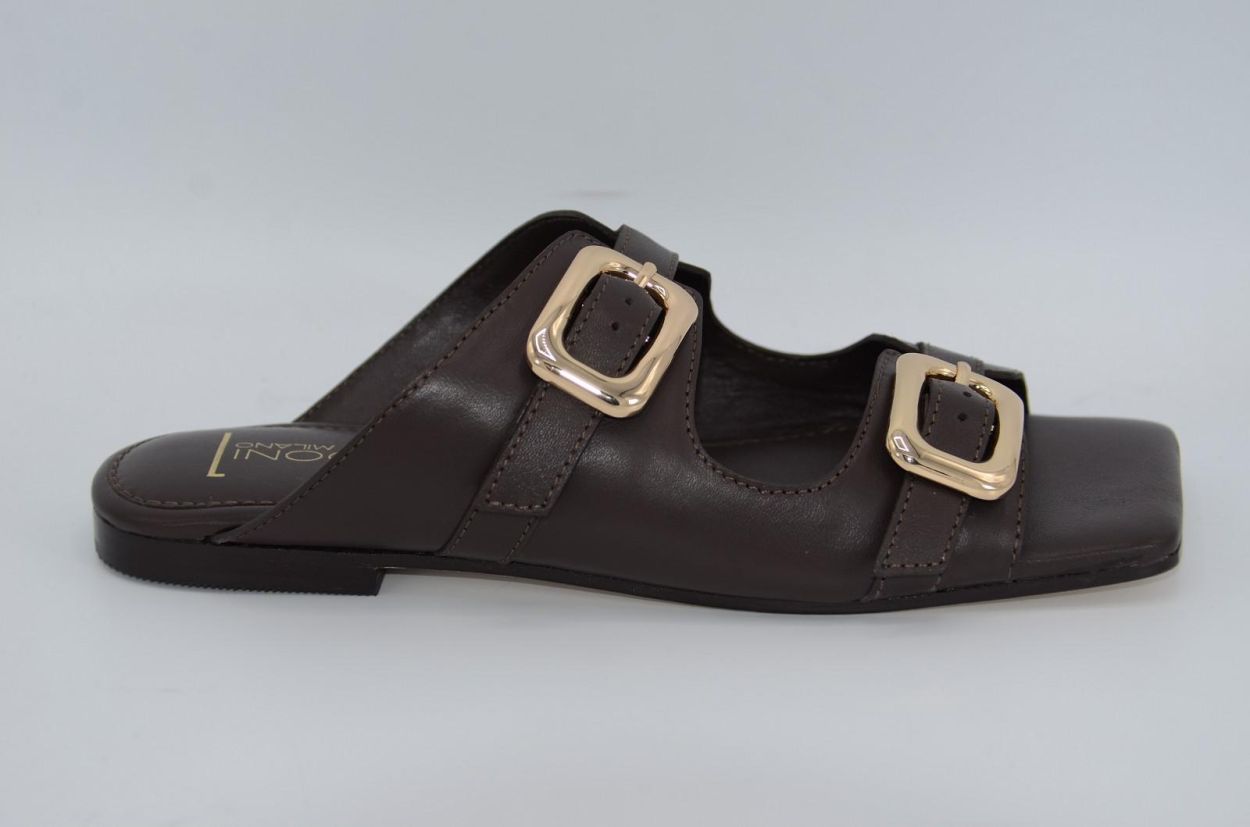 sandal slipper boucle brown leather