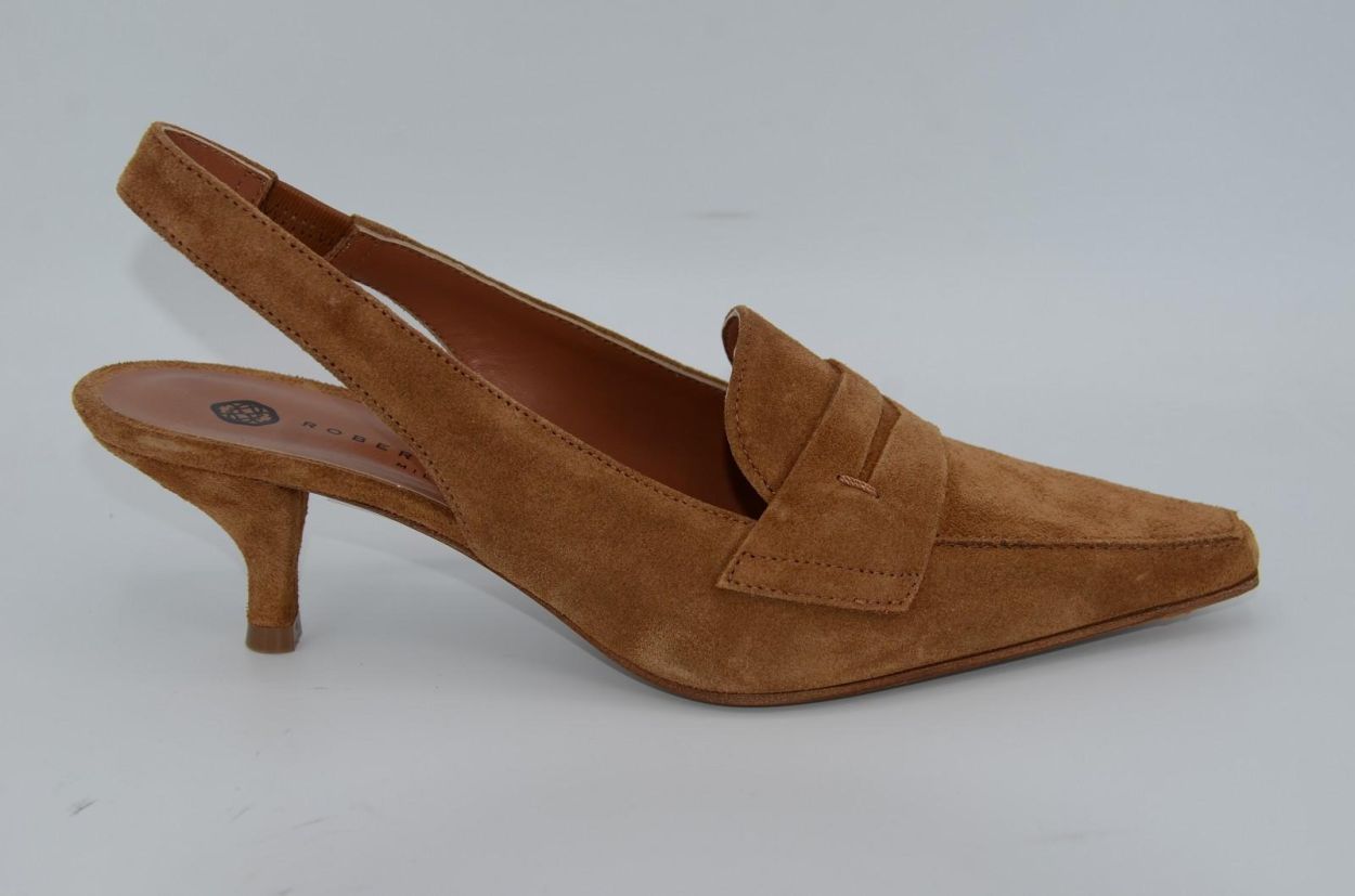 pump sling cognac suede leather