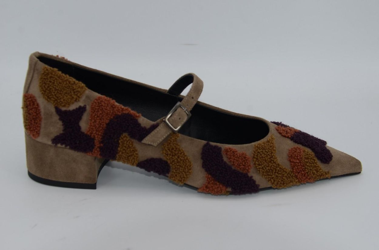 pump beige camoflage printed army wool leather